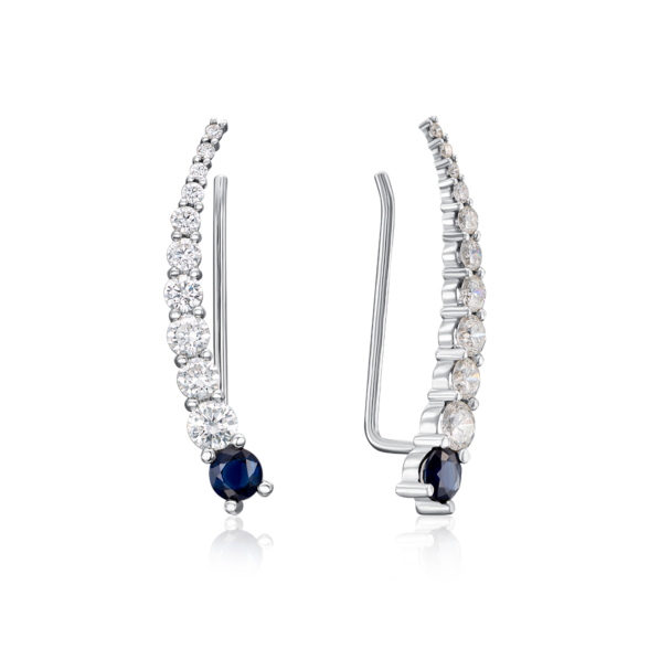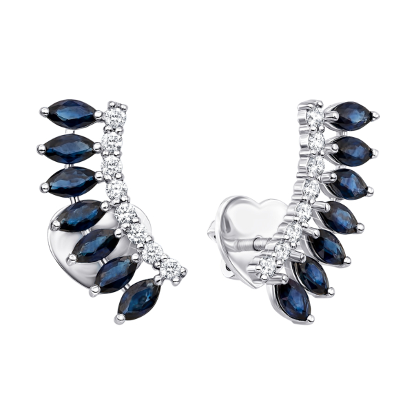 Звичайна ціна 6 124 грн Спеціальна ціна 3 491 грн Золоті сережки-кафи з діамантами і сапфіром. Артикул 53795/02/1/8244