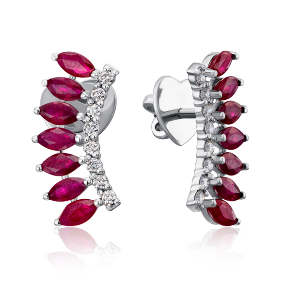 Звичайна ціна 237 907 грн Спеціальна ціна 130 849 грн Золоті сережки-кафи з рубінами і діамантами. Артикул 53796/02/1/8347