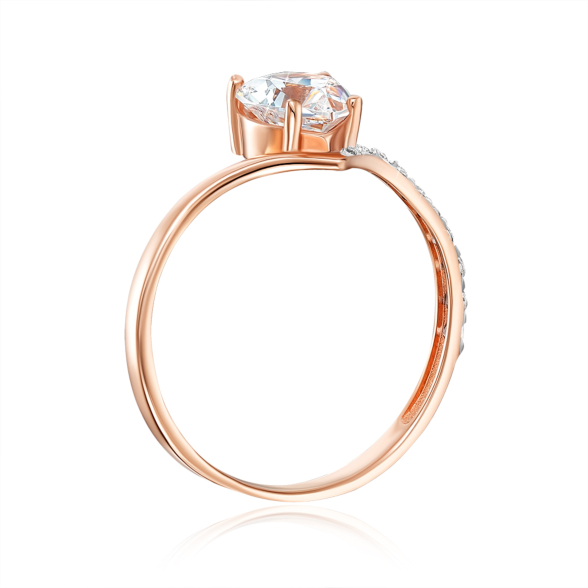 Золота каблучка «Серце» з фіанітами S. Артикул 13687/01/1/2992
