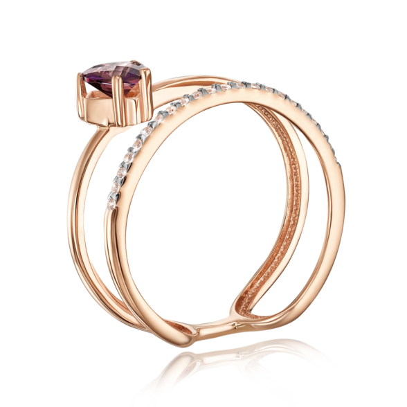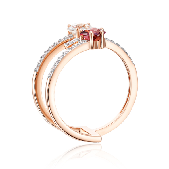 Золота каблучка «Серце» з фіанітами S. Артикул 13684/01/1/2982
