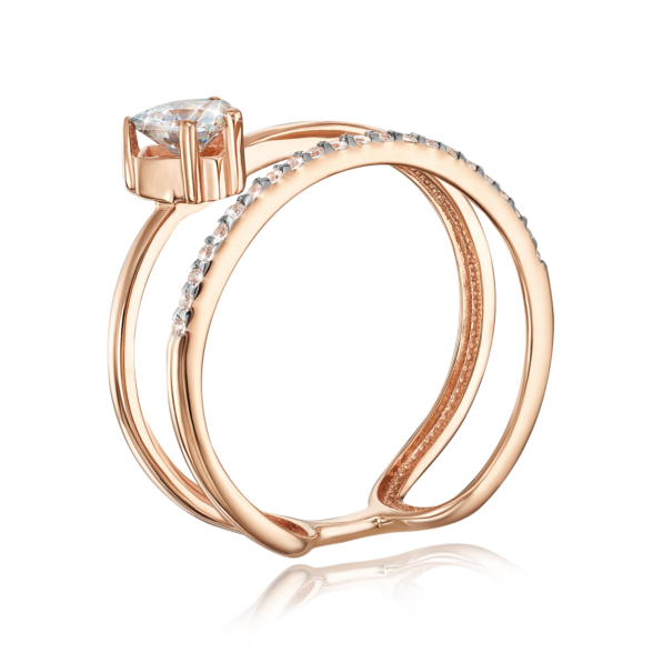 Золота каблучка «Серце» з фіанітами S. Артикул 13688/01/1/2988