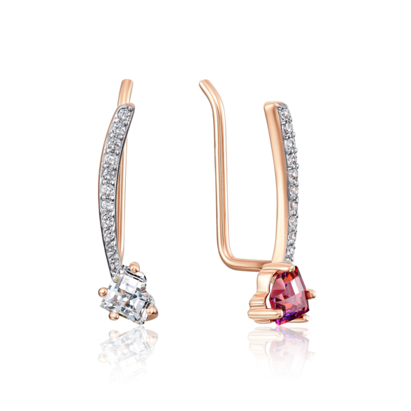 Золоті сережки-кафи «Серце» з фіанітами S. Артикул 22290/01/1/2993