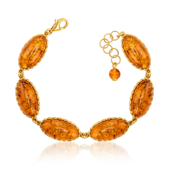 Звичайна ціна 11 397 грн Спеціальна ціна 5 471 грн Срібний позолочений браслет з бурштином. Артикул B716C-F-GP-B/20/2787