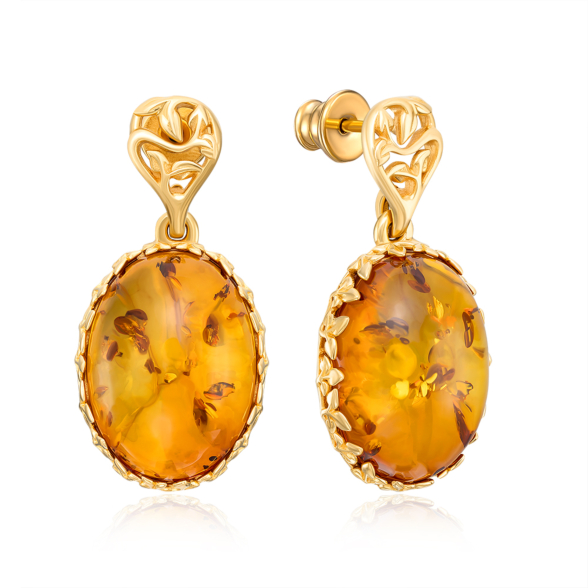 Звичайна ціна 26 492 грн Спеціальна ціна 12 716 грн Срібні позолочені сережки з бурштином. Артикул E567C-GP-E/20/2787