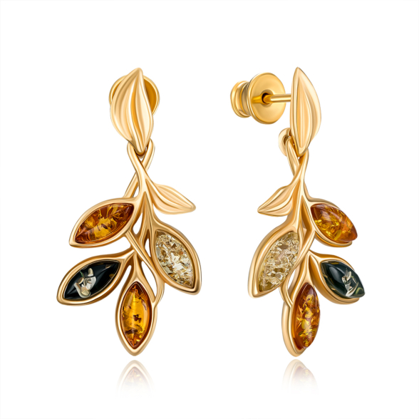Звичайна ціна 7 762 грн Спеціальна ціна 3 726 грн Срібні позолочені сережки з бурштином. Артикул AuE165C-E/20/2787