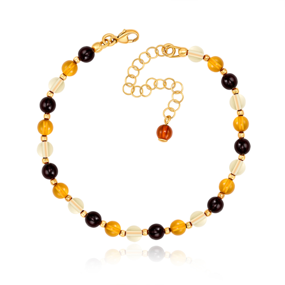 Срібний позолочений браслет з бурштином. Артикул AuBBM.5mm-B/20/2787