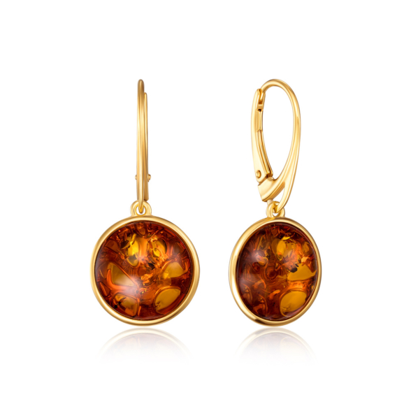 Срібні позолочені сережки з бурштином. Артикул AuE531.1C-E/20/2787