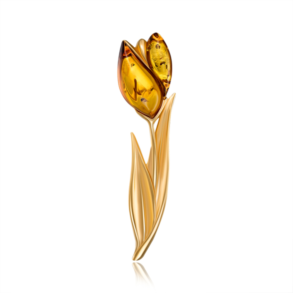 Звичайна ціна 10 786 грн Спеціальна ціна 5 177 грн Срібна позолочена брошка «Тюльпан» з бурштином. Артикул AuP203C BR-SH/20/2787