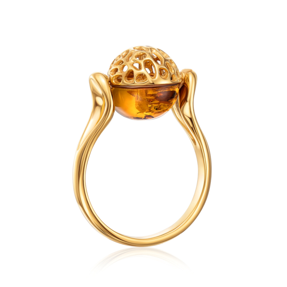 Звичайна ціна 6 811 грн Спеціальна ціна 3 269 грн Срібна позолочена каблучка з бурштином. Артикул AuR23C-R/20/2787