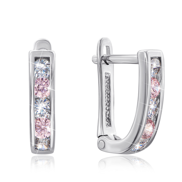 Срібні сережки з рожевими фіанітами. Артикул 40515/12/1/260