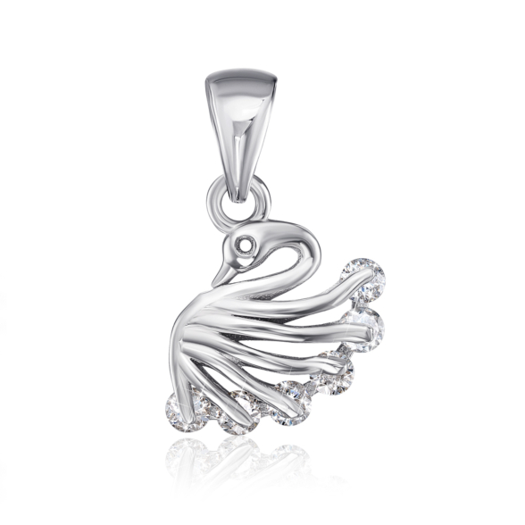 Срібна підвіска «Лебідь» з фіанітами. Артикул 1PE66466-P/12/1