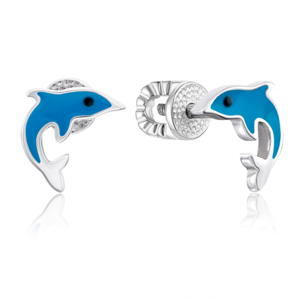 Звичайна ціна 1 430 грн Спеціальна ціна 686 грн Срібні сережки-пусети «Дельфін» з емаллю. Артикул 40024/12/1/1430