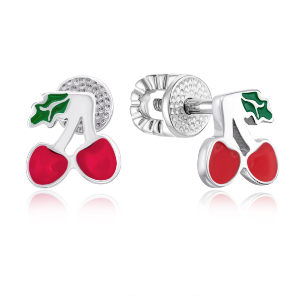 Звичайна ціна 2 213 грн Спеціальна ціна 1 062 грн Срібні сережки-пусети «Вишні» з емаллю. Артикул 40025/12/1/957