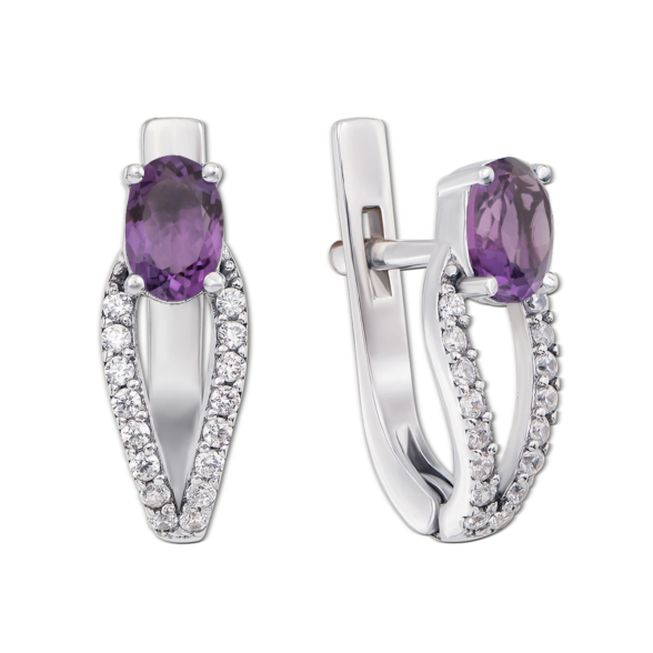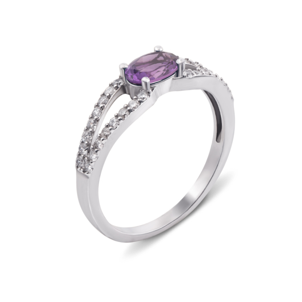 Срібна каблучка з аметистом і фіанітами. Артикул 1625/9р