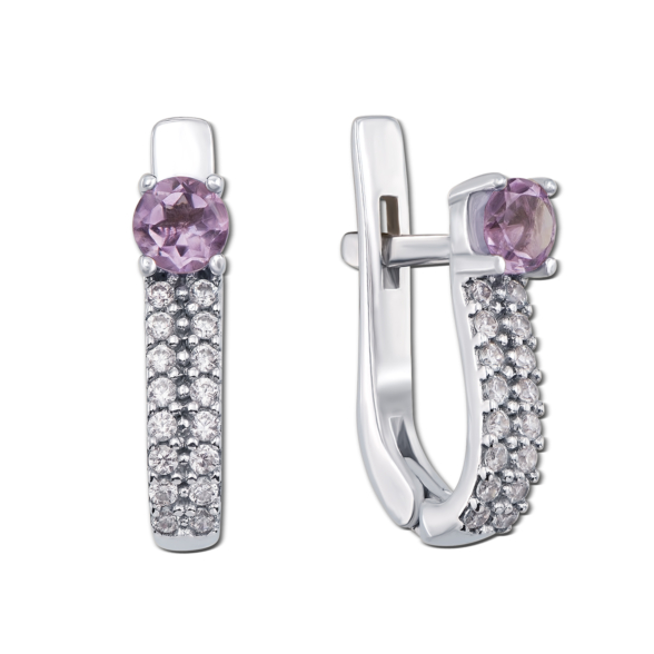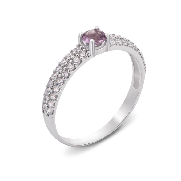 Срібна каблучка з аметистом і фіанітами. Артикул 1637/9р