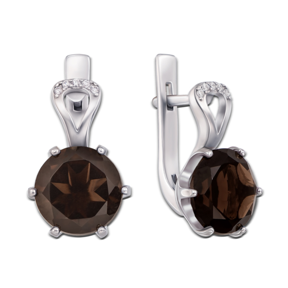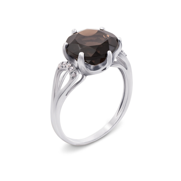 Срібна каблучка з димчастим кварцом і фіанітами. Артикул 1729/9р