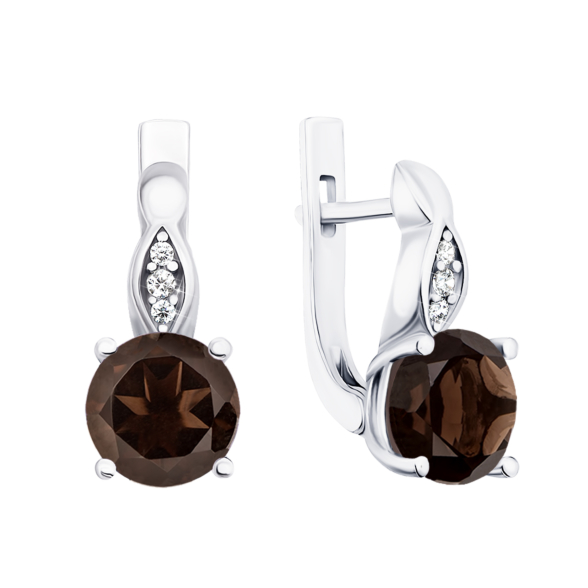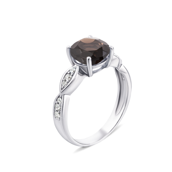 Срібна каблучка з димчастим кварцем і фіанітами. Артикул 1980/9р