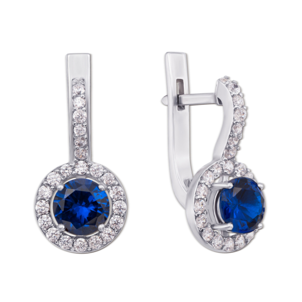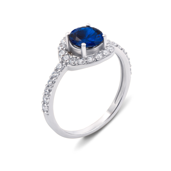 Срібна каблучка з гідротермальним сапфіром і фіанітами. Артикул 1596/9р