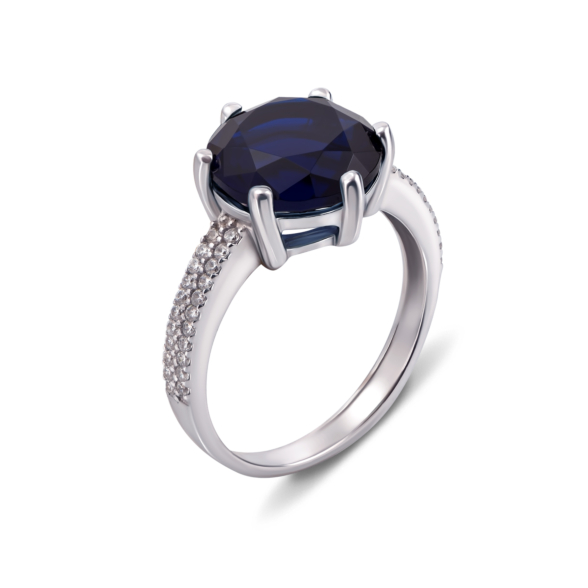 Срібна каблучка з гідротермальним сапфіром і фіанітами. Артикул 1618/9р