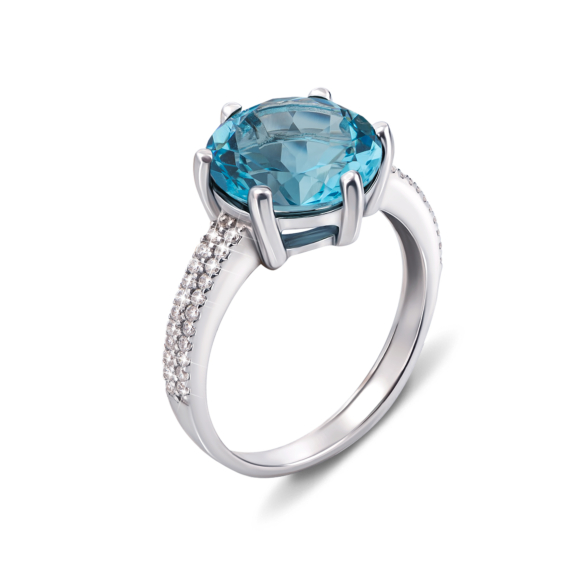 Каблучка зі срібла 925 проби з блакитним кварцом і фіанітами