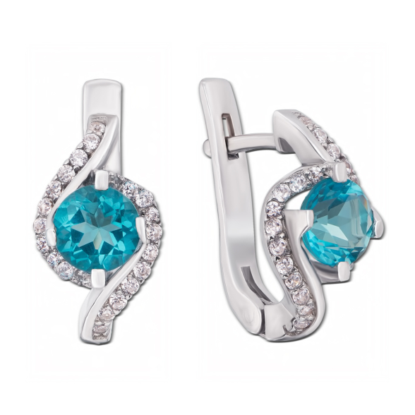 Срібна каблучка з блакитним кварцом і фіанітами. Артикул 1668/9р