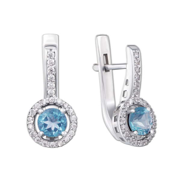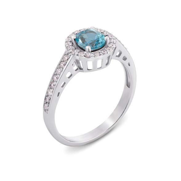 Срібна каблучка з блакитним топазом і фіанітами. Артикул 1691/9р