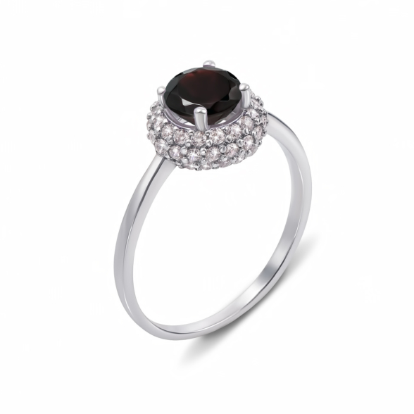 Каблучка зі срібла 925 проби з гранатом і фіанітами