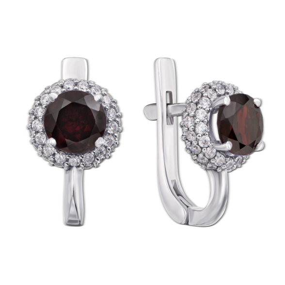 Срібна каблука з гранатом і фіанітами. Артикул 1581/9р