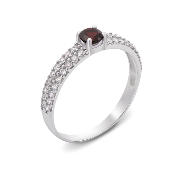 Каблучка зі срібла 925 проби з гранатом і фіанітами