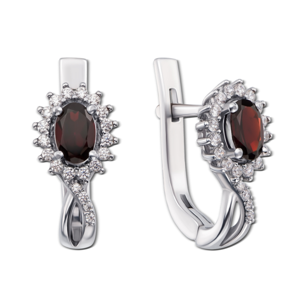 Срібна каблучка з гранатом і фіанітами. Артикул 1660/9р