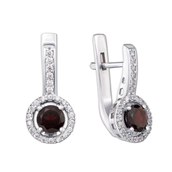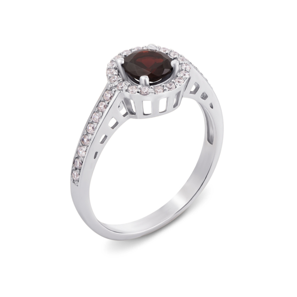 Срібна каблучка з гранатом і фіанітами. Артикул 1691/9р