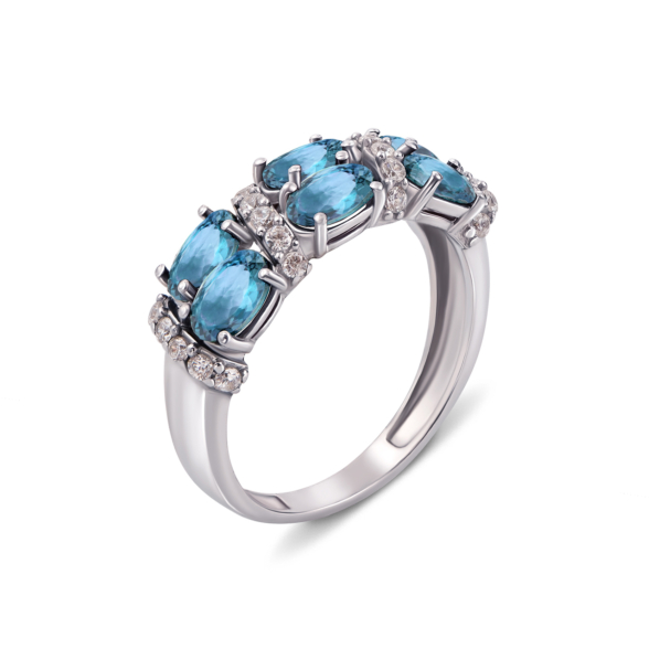 Срібна каблучка з топазом і фіанітами. Артикул 1632/9р