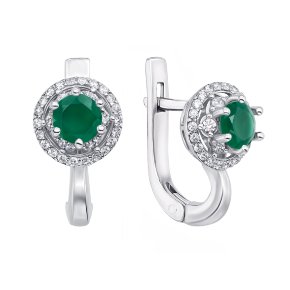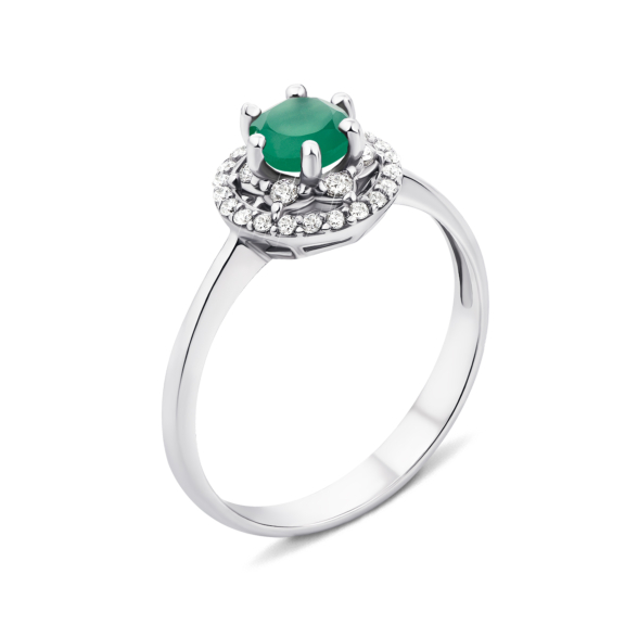 Срібна каблучка з зеленим агатом і фіанітами (1727/9р)