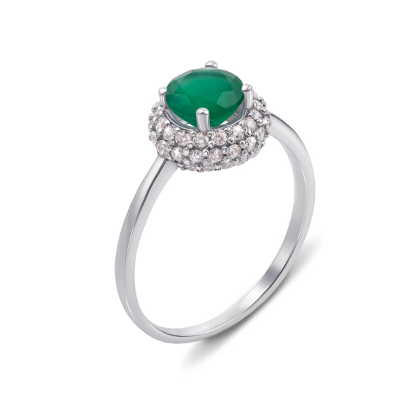 Каблучка зі срібла 925 проби з зеленим агатом та фіанітами