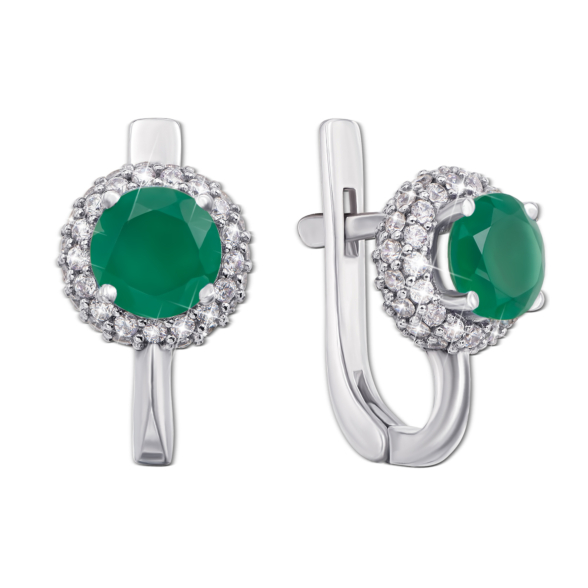 Срібна каблучка з зеленим агатом та фіанітами. Артикул 1581/9р