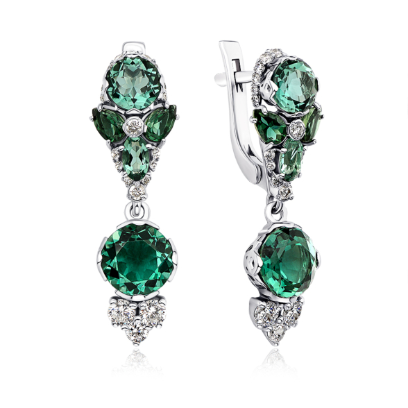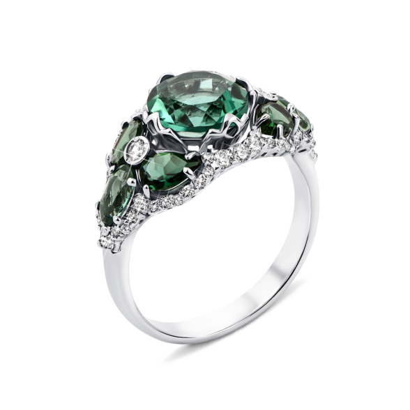 Срібна каблучка з зеленим кварцом і фіанітами (1188/1р-QGR)