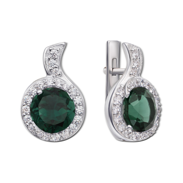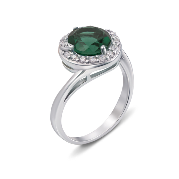 Срібна каблучка з зеленим кварцом і фіанітами. Артикул 1673/9р