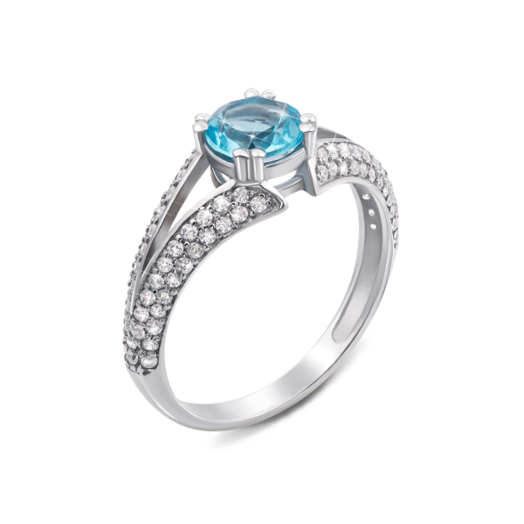 Срібні сережки з блакитним кварцом і фіанітами. Артикул 2237/9р