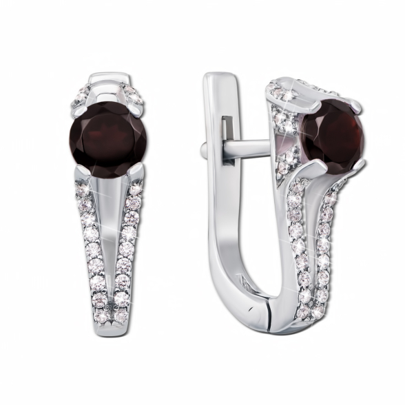 Сережки зі срібла 925 проби з гранатом і фіанітами