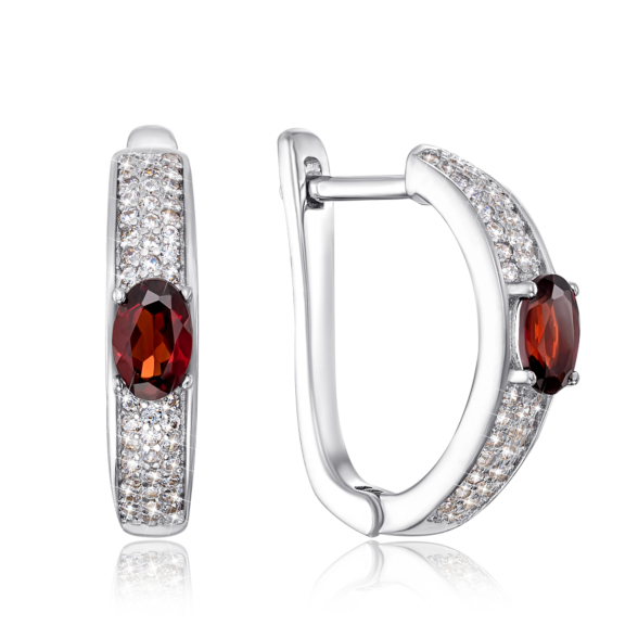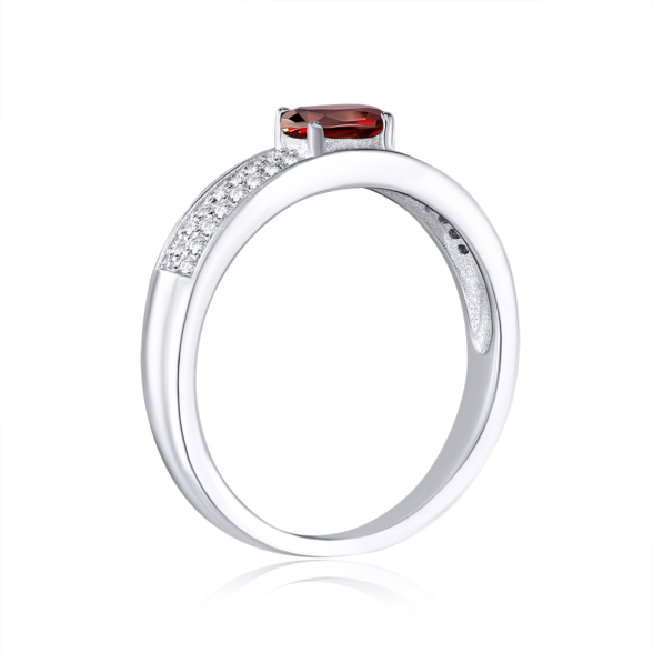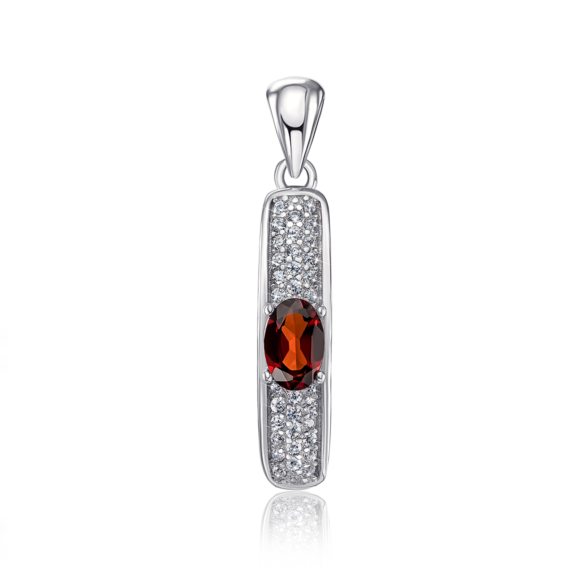 Підвіска зі срібла 925 проби з червоним гранатом (піроп) овального ограновування і фіанітами.