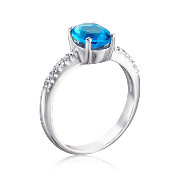 Каблучка зі срібла 925 проби з блакитним кварцом і фіанітами.