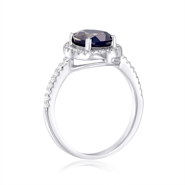 Каблучка зі срібла 925 проби з синім сапфіром і фіанітами.