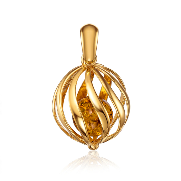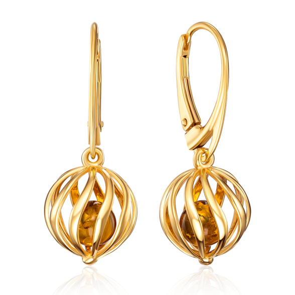Срібні позолочені сережки-підвіски з бурштином. Артикул AuE119C-E/17/2787