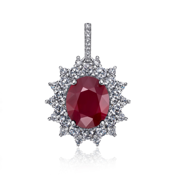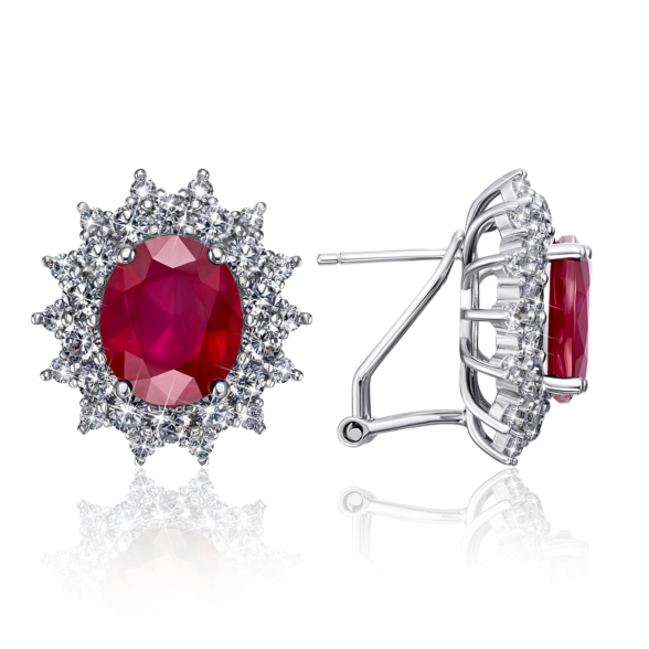 Сережки зі срібла 925 проби з червоним гідротермальним рубіном і фіанітами.
