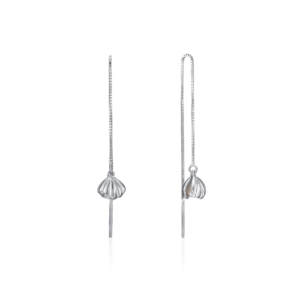 Сережки-протяжки зі срібла 925 проби з перлиною