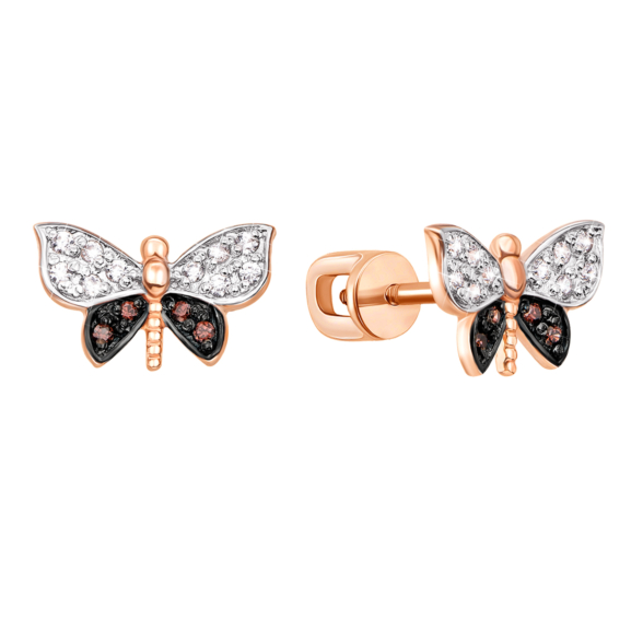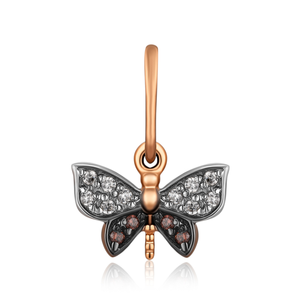 Підвіска з червоного золота 585 проби «Метелик» з фіанітами