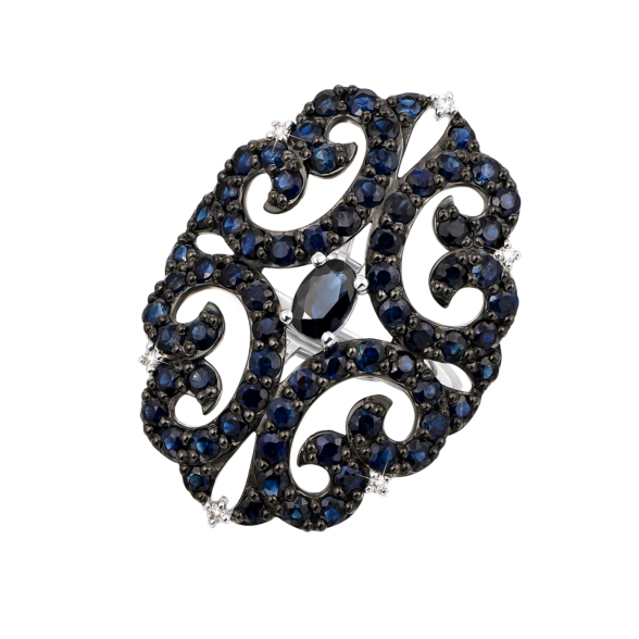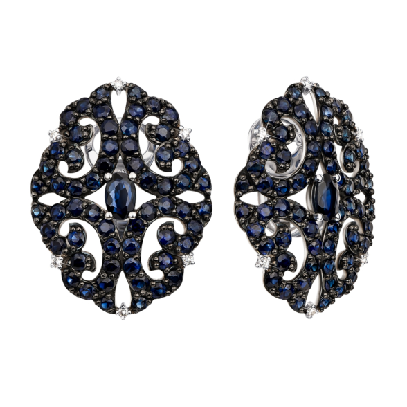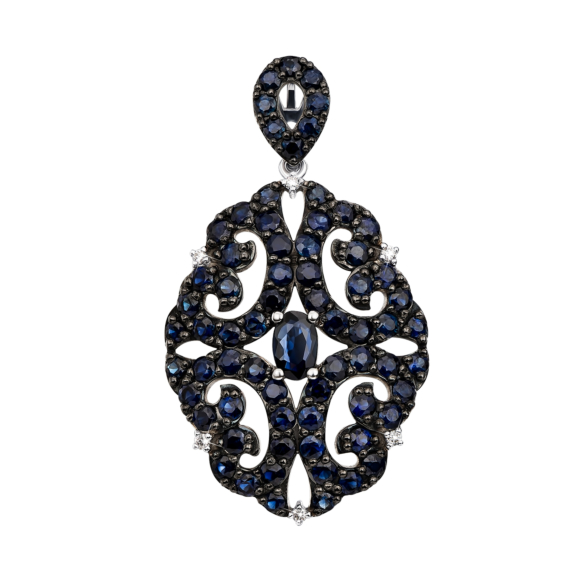 Підвіска з білого золота 585 проби з діамантами і сапфірами