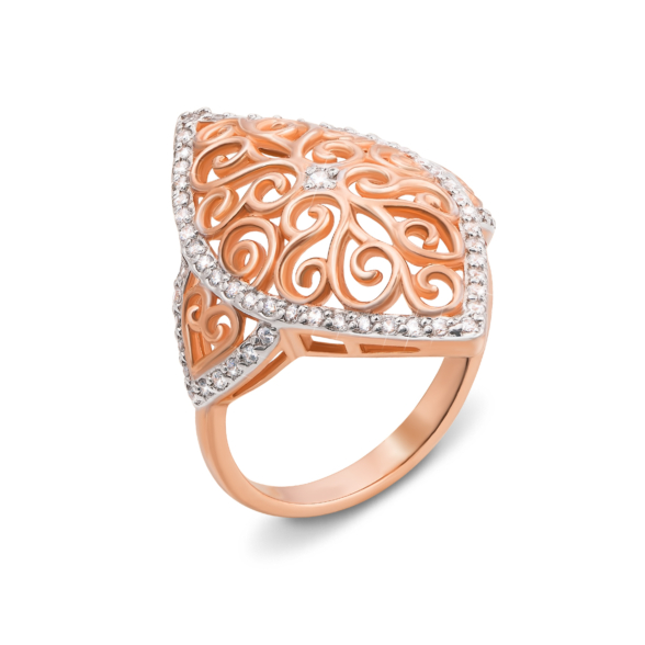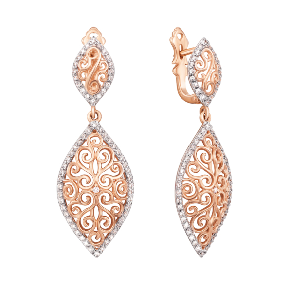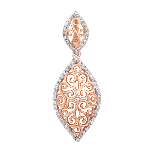 Ажурна підвіска з червоного золота з фіанітами - витончена і стильна прикраса, яка підкреслить витонченість і жіночність вашого образу і подарує своїй власниці легкий і повітряний настрій. Розкішна золота підвіска, декорована фіанітами, -чудовий подарунок для будь-якої жінки - яскравий і оригінальний.