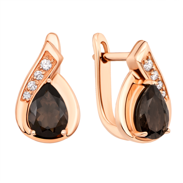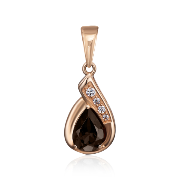 Золота підвіска з раухтопазом і фіанітами. Артикул 550036/дим.кварц с