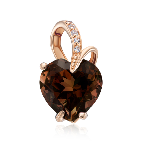 Підвіска з червоного золота 585 проби з раухтопазом і фіанітами
